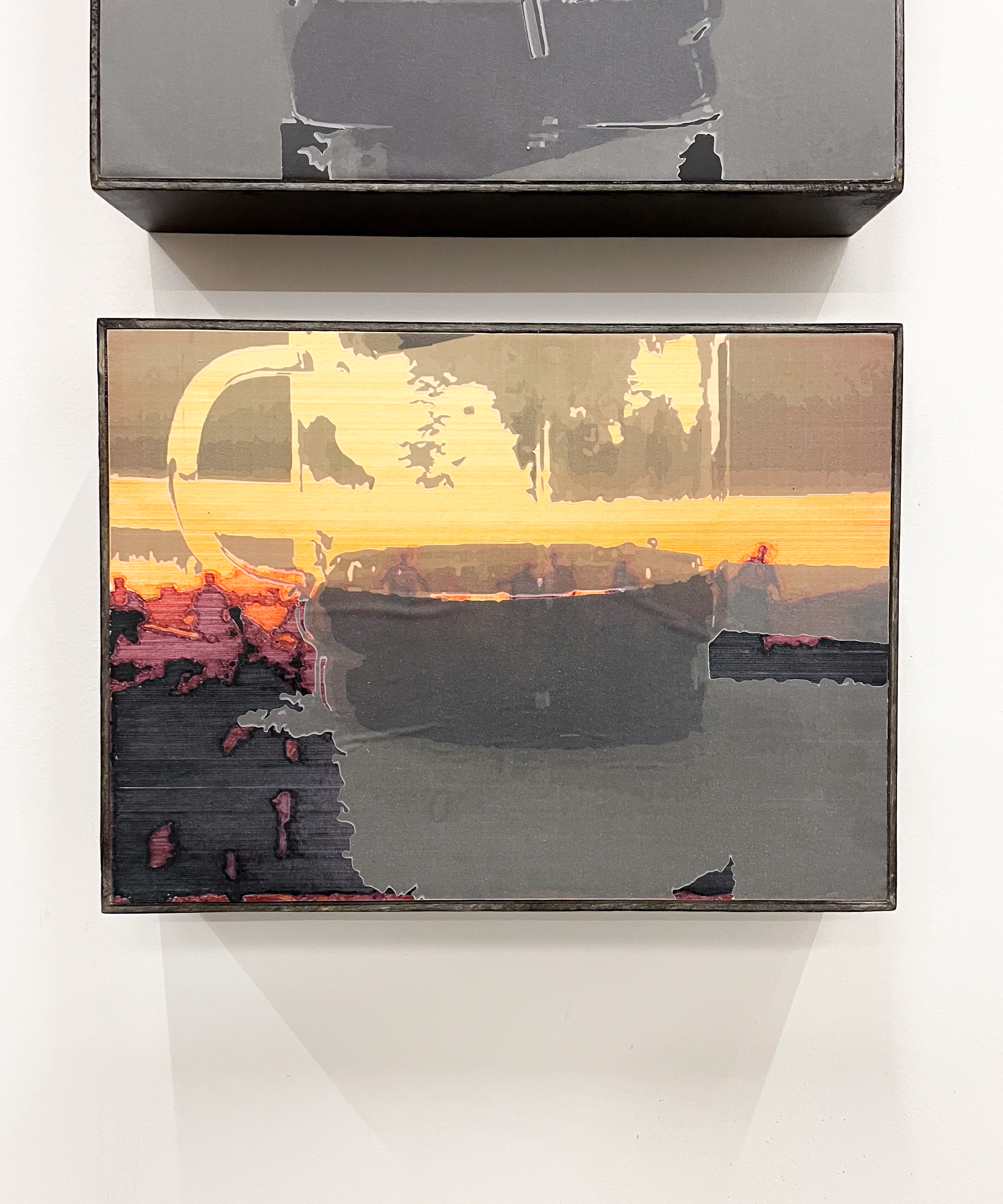 Feutres stylo bille, papier calque, contre-collage sur bois;