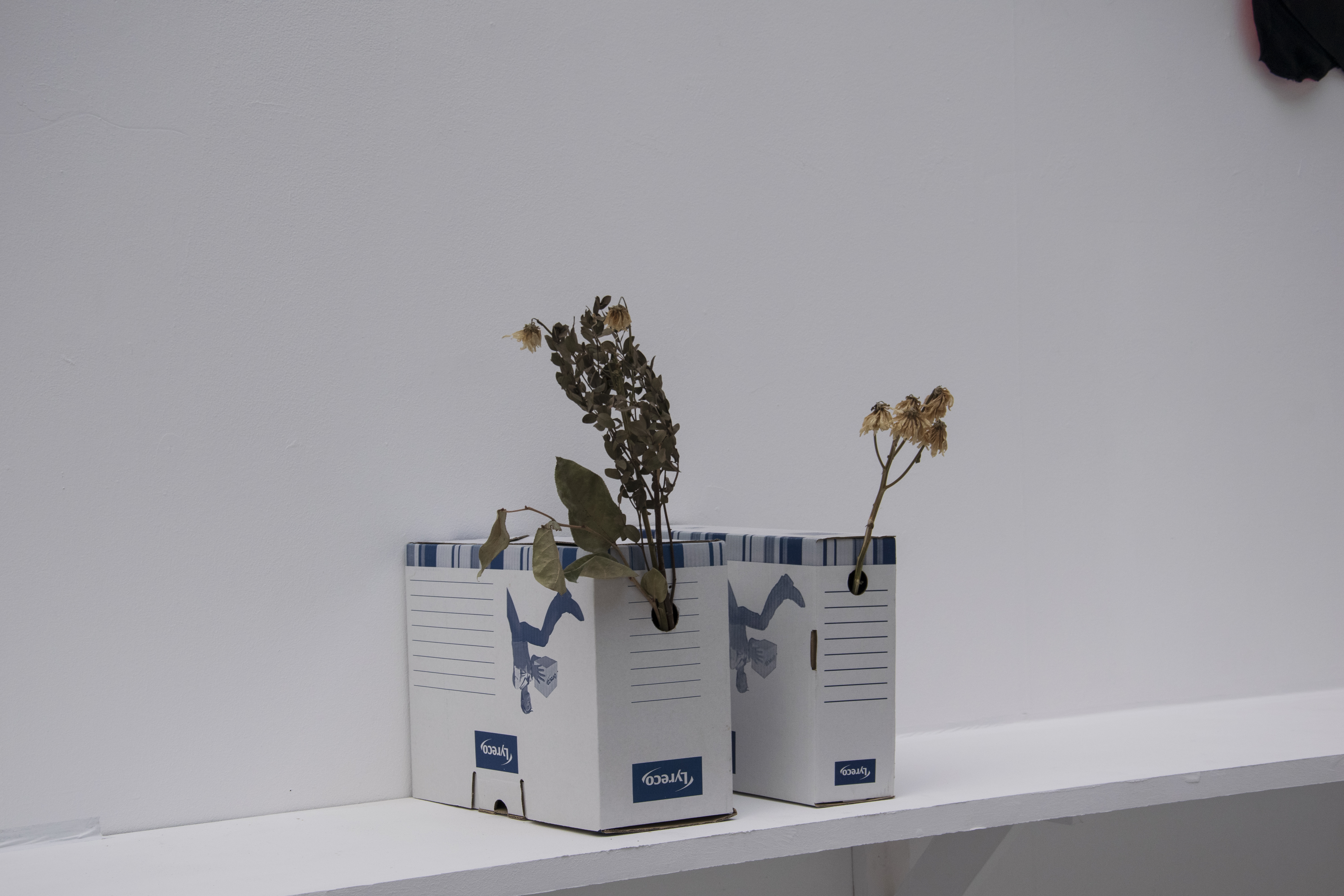 , 2021, Boîtes d’archives et plantes séchées, dimensions variables.