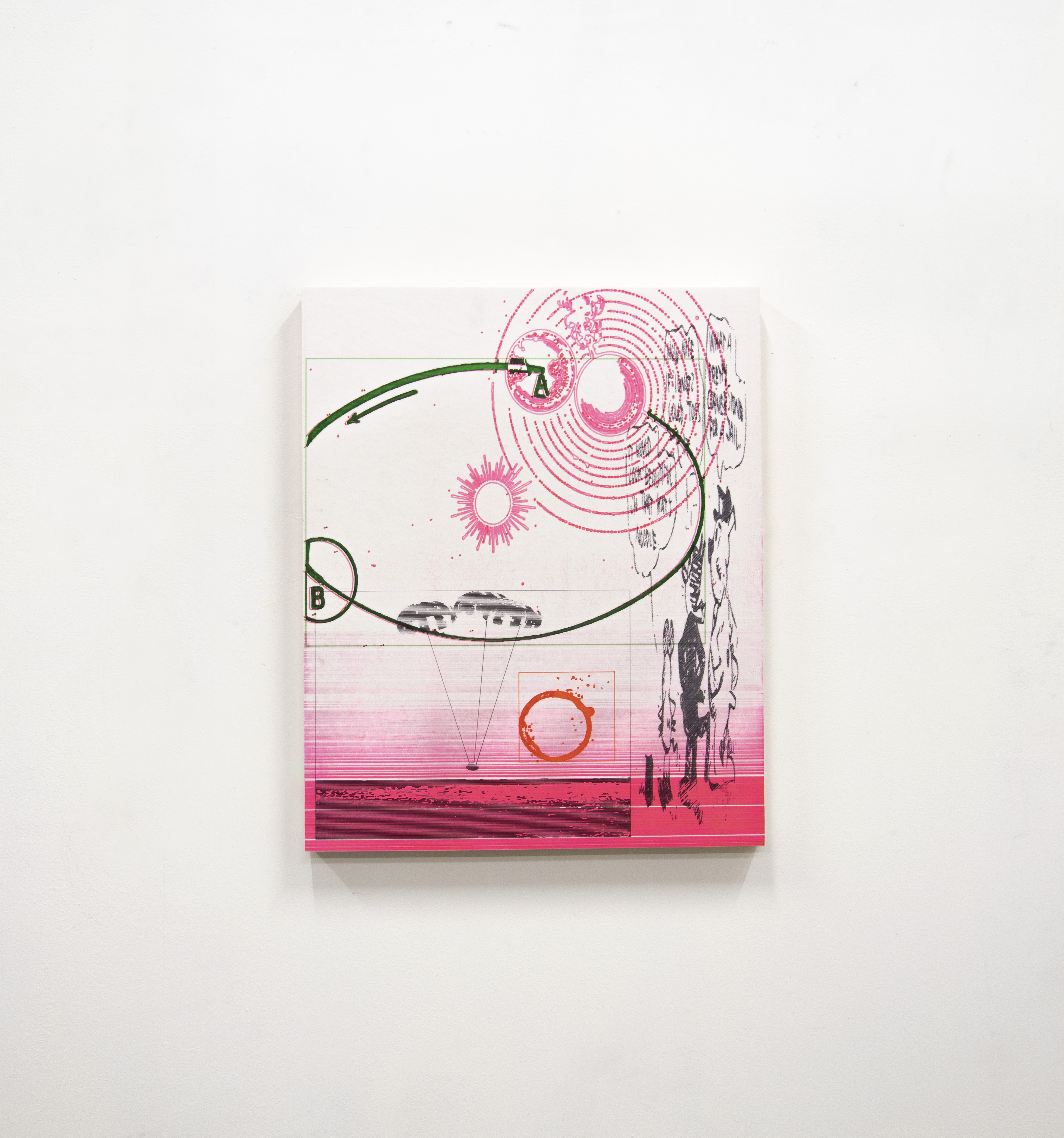 Feutres, stylo bille, contre-collage sur bois; 45x55cm.