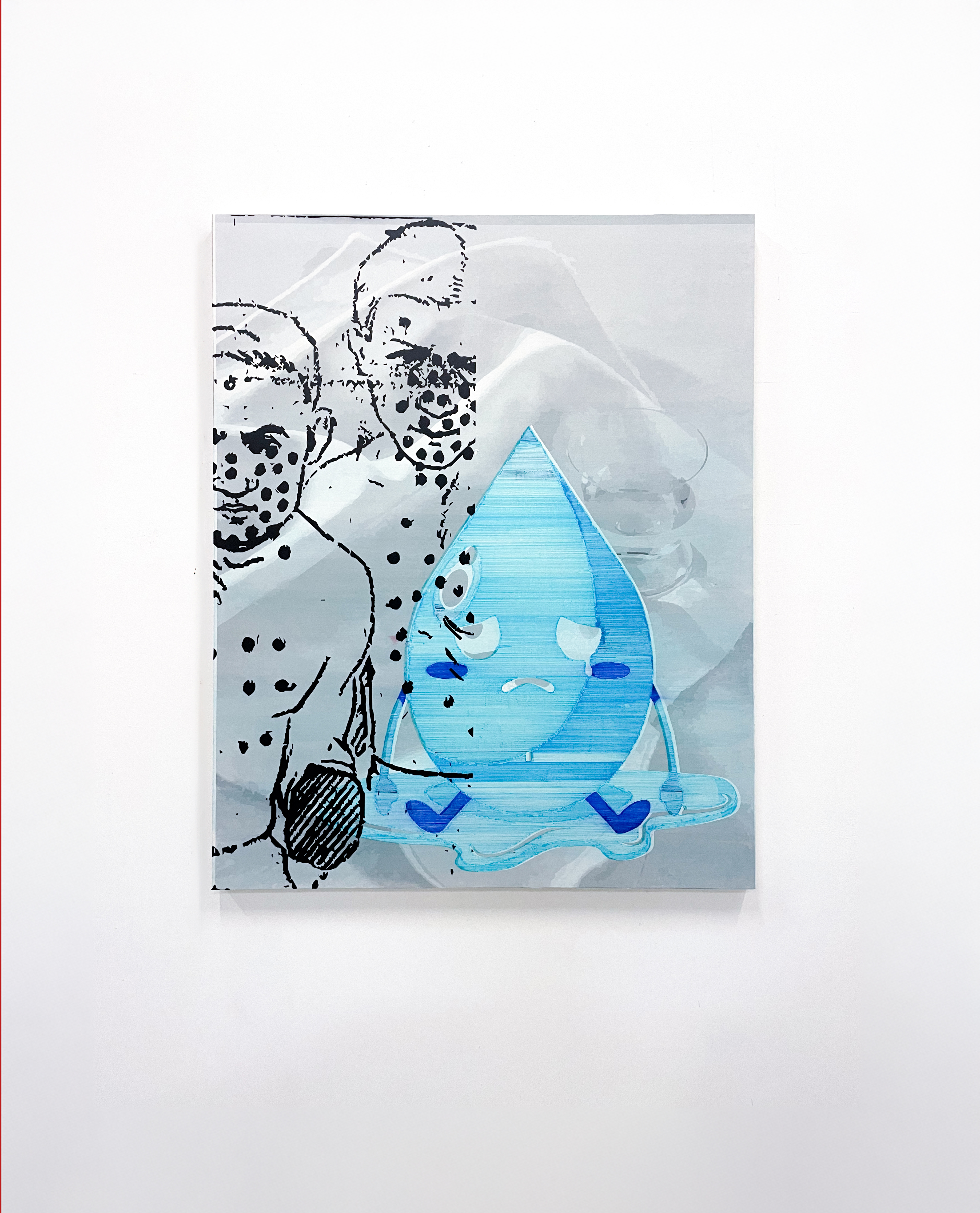 Feutres, impression jet d’encre, vynile, contre-collage sur bois; 70x87 cm.